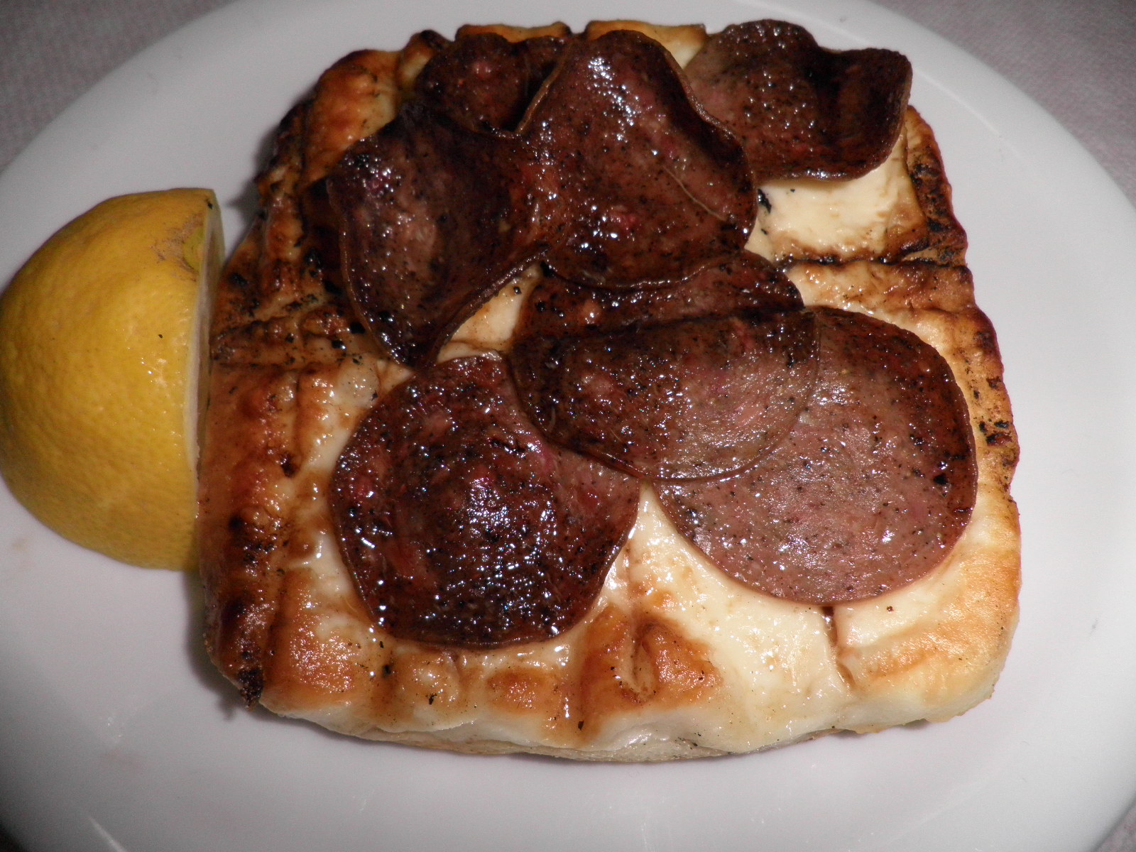 Κεφαλοτύρι σαγανάκι με σουτζούκι καραμανλίδικο στην ταβέρνα Καππαδόκας